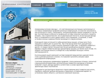 Разработка сайта компании «Алюминиевые конструкции»
